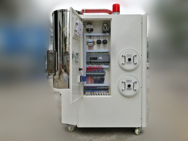 –、吸料部分:吸料是從儲料桶或其它儲料容器中吸入干燥料桶內,當真空料斗的磁簧開關偵測到無料時,吸料馬達運轉,使真空料斗內產生真空,儲料桶中的原料由于空氣的壓力差被吸入真空斗內,當吸料時間完成后,吸料馬達停止運轉,原料會因自重落入干燥料桶內.經干燥后的原料從干燥料桶抽到安裝在成型機的光電料斗或微動料斗內.